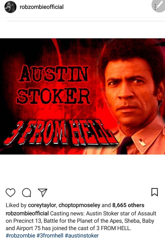 Rob has also confirmed today that Austin Stoker, star of Battle for the Planet of the Apes has joined the cast.