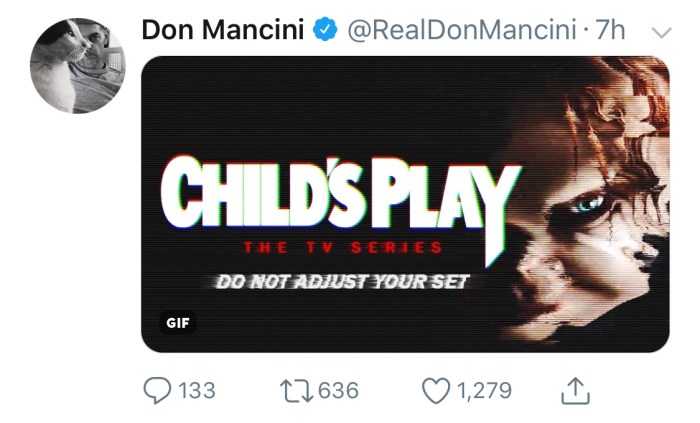 Don Mancini, creator and producer of the Child’s Play franchise announced via Twitter today that a Child’s Play TV series is coming.