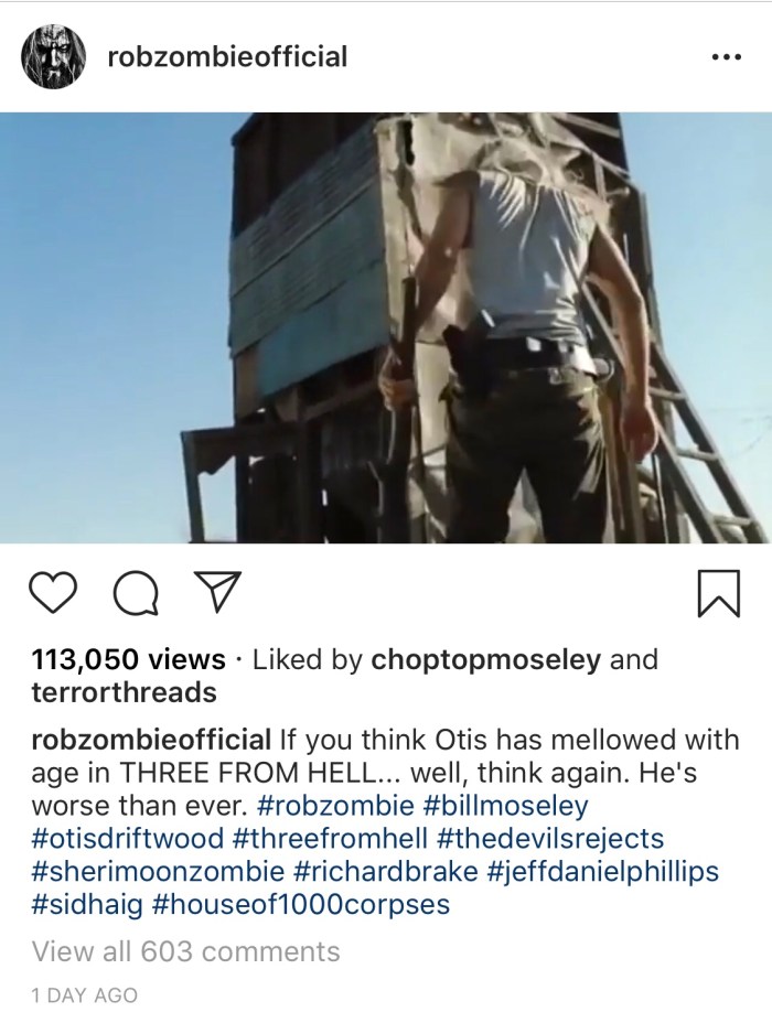 Rob Zombie took it to his Instagram account to let the fans know that Otis has not mellowed down with age and he’s “worse than ever”